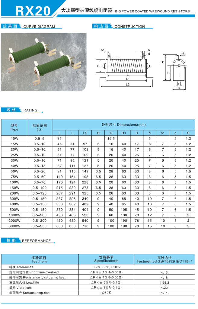 大功率型被漆线绕电阻器